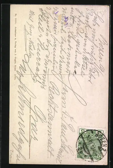 alte Ansichtskarte, gelaufen 1912, Eckknicke li., Oberflächenschaden, rückseitig Oberflächenschaden