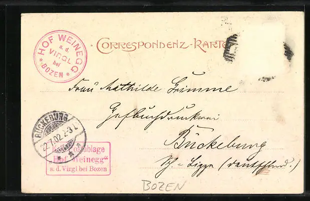 AK Bozen, Gasthof Weinegg a. d. Virgl