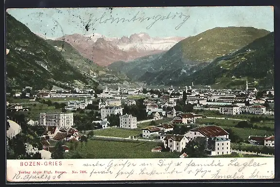 AK Bozen-Gries, Generalansicht mit Bergpanorama
