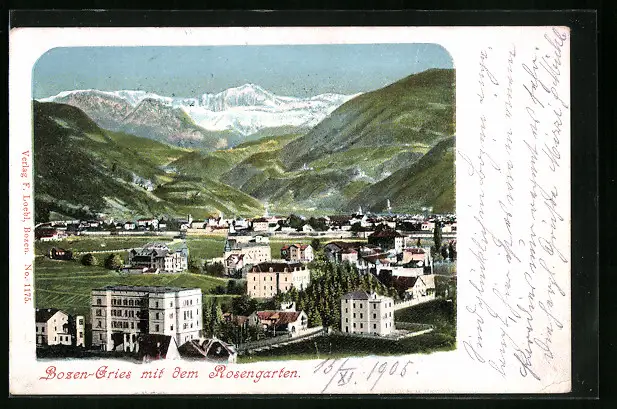 AK Bozen-Gries, Ortsansicht mit dem Rosengarten