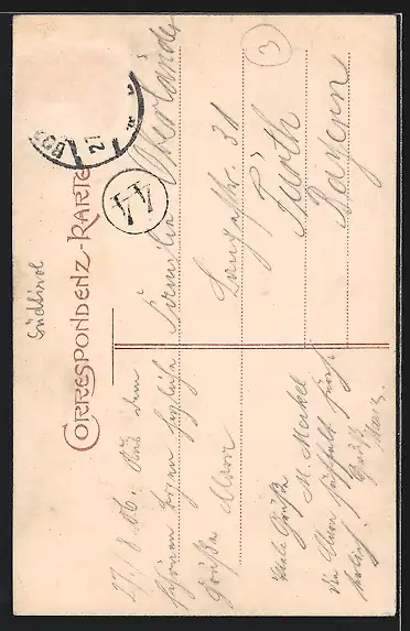 alte Ansichtskarte, gelaufen, Briefmarke entfernt, rückseitig Oberflächenschaden, guter Zustand