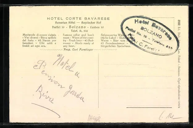 AK Bozen, Hotel Bayrischer Hof in den Lauben 10, Innenansicht