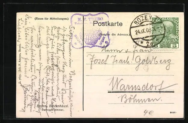 AK Bozen, Innenansicht Gasthaus Batzenhäusl, Defreggerzimmer