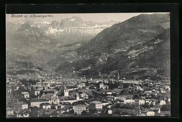 AK Bozen, Ortsansicht mit Rosengarten