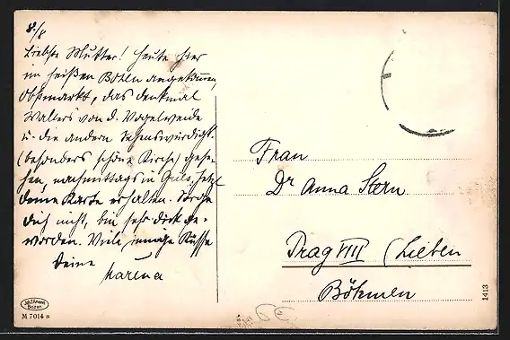 alte Ansichtskarte, gelaufen, Briefmarke entfernt, rückseitig Oberflächenschaden, guter Zustand