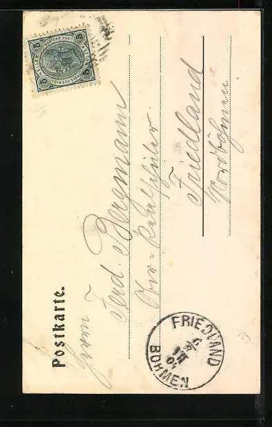 alte Ansichtskarte, gelaufen 1904, Eckknick unten re., guter Zustand