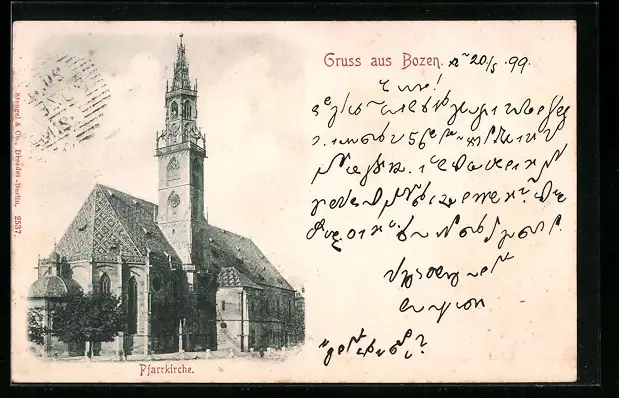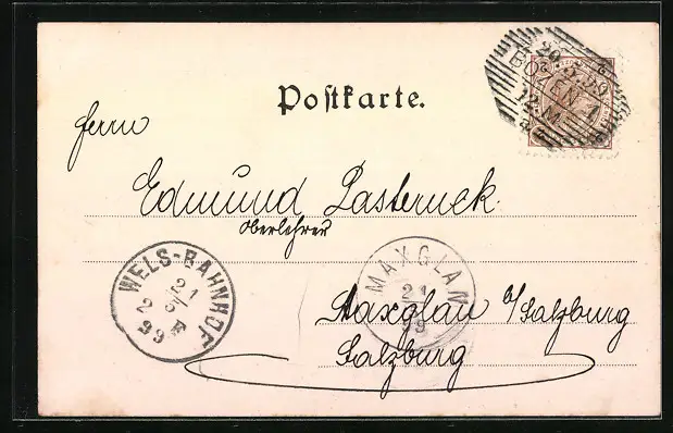 alte Ansichtskarte, gelaufen 1899, Stempelspur, guter Zustand