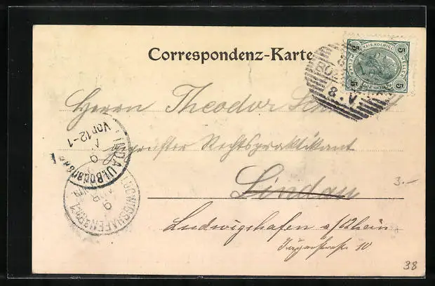 alte Ansichtskarte, gelaufen 1902, guter Zustand