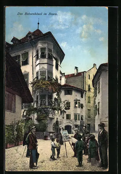 AK Bozen, Strassenmaler vor dem Gasthaus Batzenhäusl
