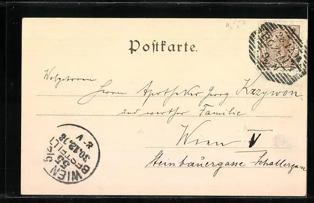 alte Ansichtskarte, gelaufen 1898, Eckknick oben rechts, guter Zustand