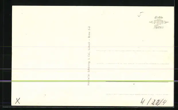 Personenbezogene Daten auf der Rückseite der Karte wurden durch blauen Textmarker unkenntlich gemacht. Die blauen Stellen sind auf die Vorderseite durchgeweicht und wirken sich negativ auf das Postkartenfoto aus