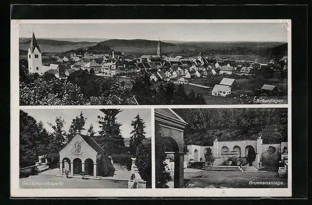 AK Bräunlingen, Teilansicht, Gedächtniskapelle, Brunnenalage