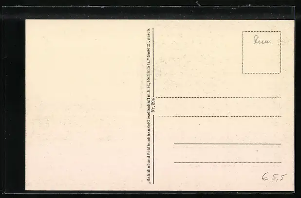 Personenbezogene Daten auf der Rückseite der Karte wurden durch blauen Textmarker unkenntlich gemacht. Die blauen Stellen sind auf die Vorderseite durchgeweicht und wirken sich negativ auf das Postkartenfoto aus
