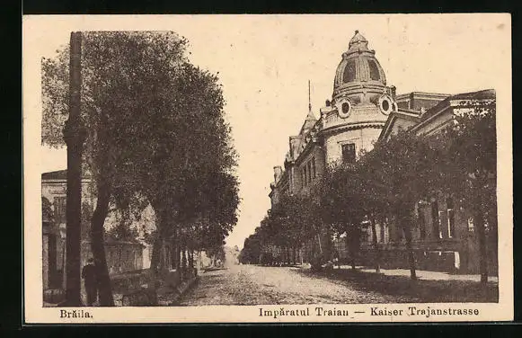 AK Braila, Kaiser Trajanstrasse mit Bäumen