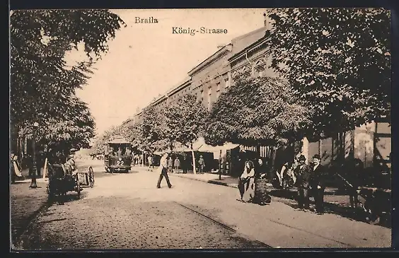 AK Braila, Strassenbahnverkehr in der König-Strasse