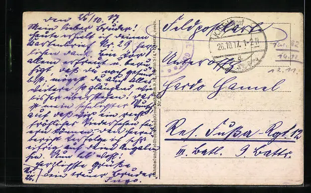 alte Ansichtskarte, gelaufen 1917 als Feldpost, Eckknick unten re., guter Zustand
