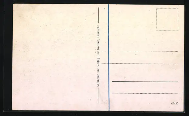 Personenbezogene Daten auf der Rückseite der Karte wurden durch blauen Textmarker unkenntlich gemacht. Die blauen Stellen sind auf die Vorderseite durchgeweicht und wirken sich negativ auf das Postkartenfoto aus