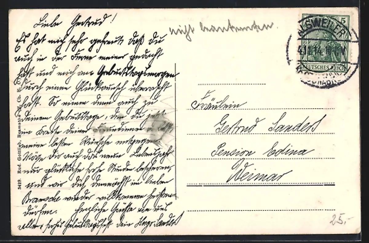 alte Ansichtskarte, gelaufen 1914, guter Zustand