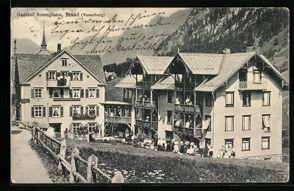 AK Brand, Strassenpartie mit Gasthof Scesaplana