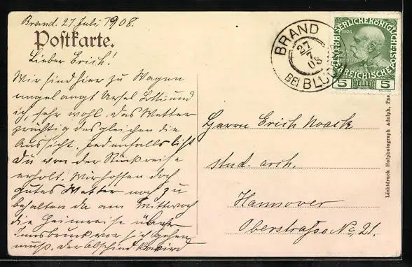 alte Ansichtskarte, gelaufen 1908, guter Zustand