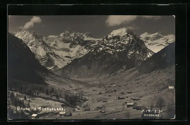 AK Brand, Totalansicht mit dem Berg Scesaplana
