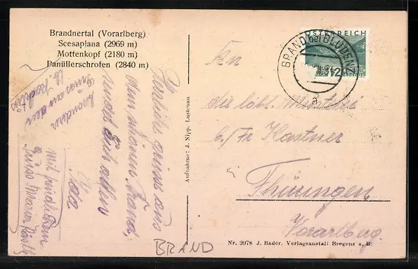 AK Brand im Brandnertal, Teilansicht mit Scesaplana, Mottenkopf und Panüllerschrofen