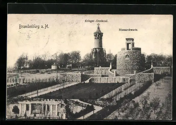 AK Brandenburg / Havel, Kriegerdenkmal und Bismarckwarte