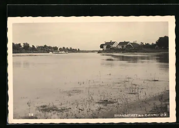 AK Brandstatt a. D., Mooriges Donauufer mit Dampfer