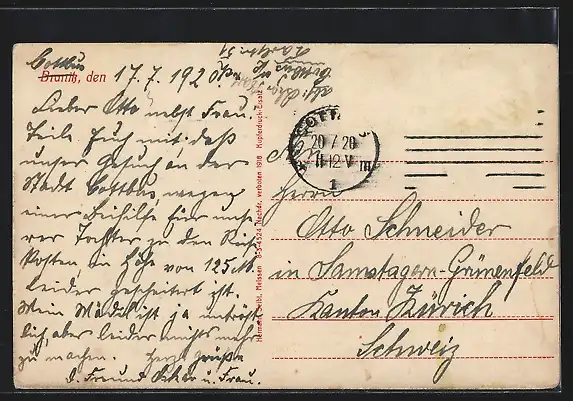 alte Ansichtskarte, gelaufen 1920, Briefmarke entfernt, guter Zustand