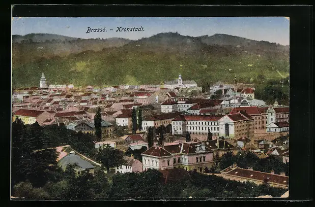 AK Brassó-Kronstadt, Ortsansicht mit Bergpanorama