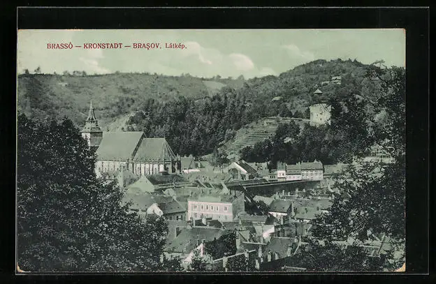 AK Brassó, Látkép, Teilansicht mit Kirche