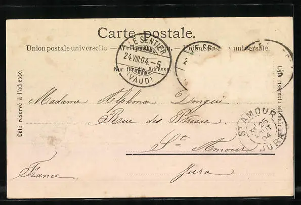 gelaufen 1904, Briefmarke entfernt, rückseitig Oberflächenschaden, guter Zustand