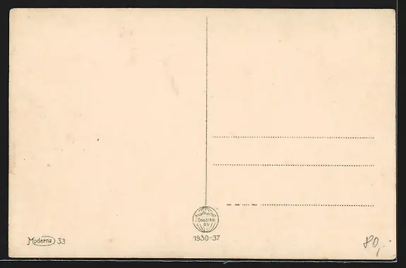 Personenbezogene Daten auf der Rückseite der Karte wurden durch blauen Textmarker unkenntlich gemacht. Die blauen Stellen sind auf die Vorderseite durchgeweicht und wirken sich negativ auf das Postkartenfoto aus
