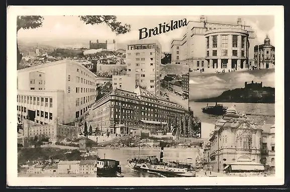 AK Bratislava, Gebäudeansicht, Dampfer, Ortspartie