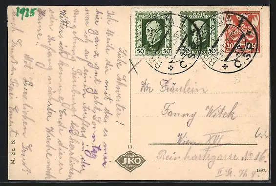 gelaufen 1925, Stempelspur, Eckknick re. oben, guter Zustand