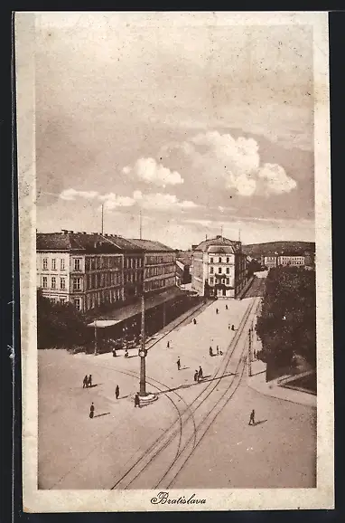 AK Bratislava, Strassenpartie mit Spaziergängern
