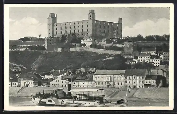 AK Bratislava, Teilansicht mit Burg, Dampfer