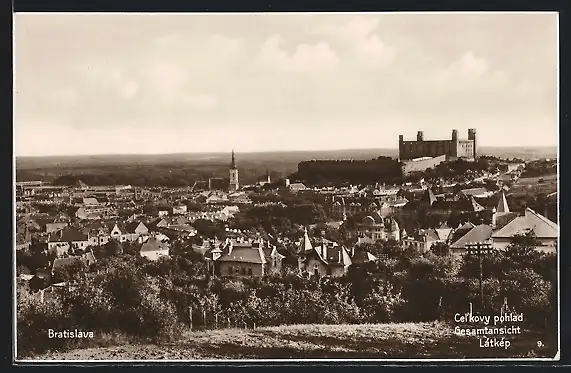 AK Bratislava, Teilansicht mit Burg von oben