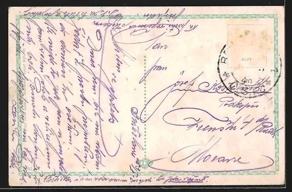 alte Ansichtskarte, gelaufen, Briefmarke entfernt, guter Zustand