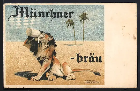 AK Brauerei-Werbung Münchnerbräu, Löwe mit Bierkrug