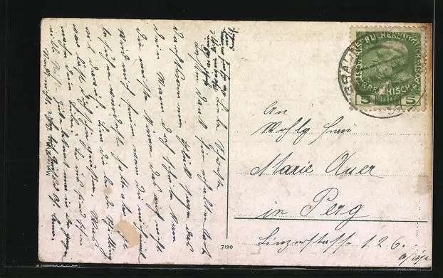 alte Ansichtskarte, gelaufen, rückseitig Oberflächenschaden, guter Zustand