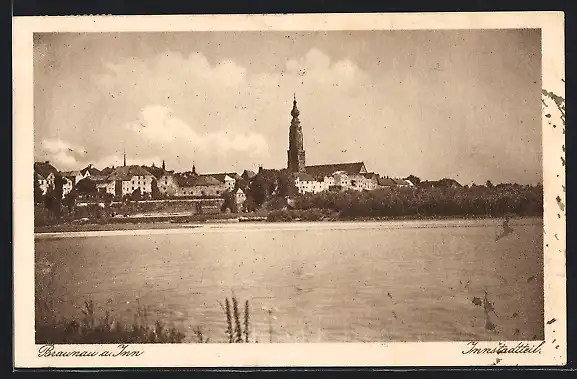 AK Braunau a. Inn, Innstadtteil mit Kirche