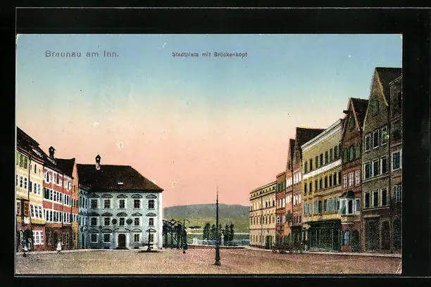 AK Braunau a. Inn, Stadtplatz mit Brückenkopf
