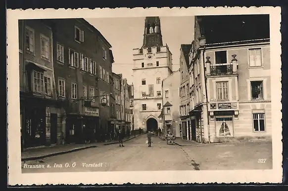 AK Braunau a. Inn, Strassenpartie in der Vorstadt, Gasthaus Lechnerbräu