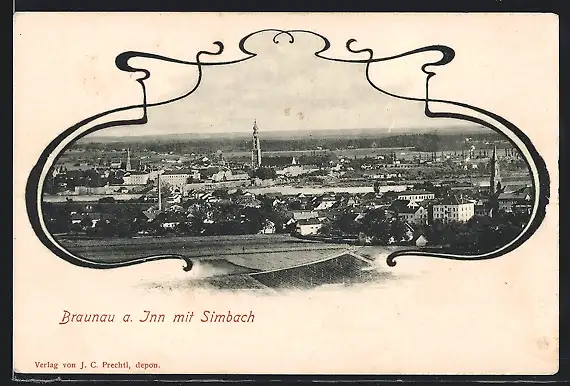 AK Braunau a. Inn, Teilansicht mit Simbach