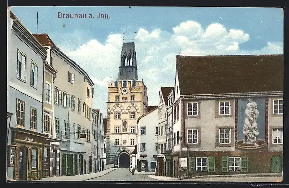 AK Braunau a. Inn, Teilansicht mit Torbogen