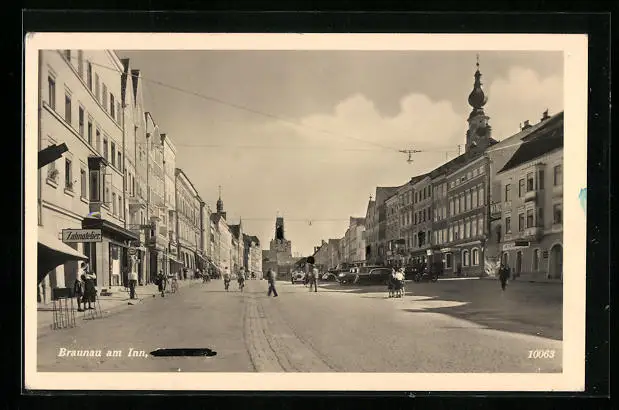 AK Braunau am Inn, Innenansicht mit Geschäften und Zahnatelier