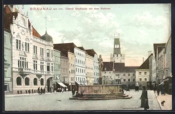 AK Braunau am Inn, Oberer Stadtplatz mit dem Rathaus