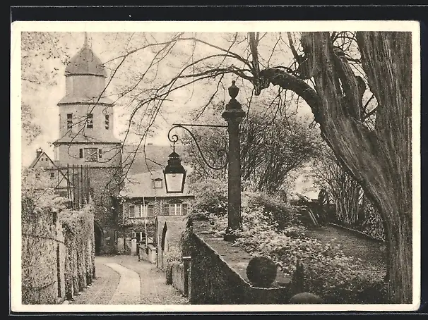 AK Braunfels, Wegpartie mit Blick auf den Glockenturm