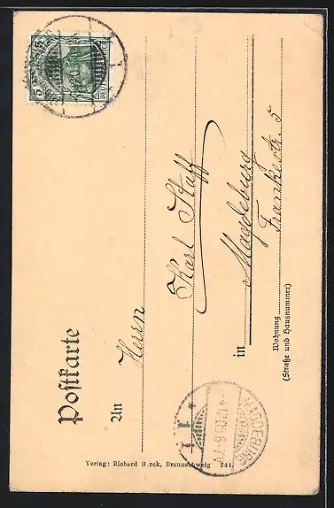 alte Ansichtskarte, gelaufen 1905, Stempelspur, guter Zustand